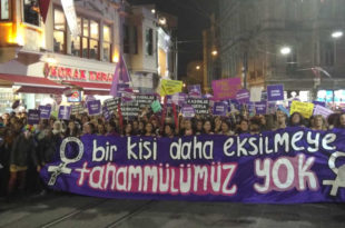kategori: HaberlerTürkiye’nin Cumhurbaşkanı kararnamesiyle ile İstanbul Sözleşmesi’nden ayrılmasına karşı kadınlar bir çok şehirde sokağa çıktı. Gerçekleştirilen eylemlerde, bir çok noktada polis kadınları engellemeye çalıştı. İstanbul Kadınlar İstanbul’da Kadıköy’de İskele Meydanı’nda bir araya geldi. İskele Meydanı’nda binlerce kadın “Susmuyoruz, korkmuyoruz, itaat etmiyoruz”, “Zıpla zıpla zıplamayan Tayyip’tir” ve “Dünya yerinden oynar kadınlar özgür olsa” sloganları attı. Burada okunan…