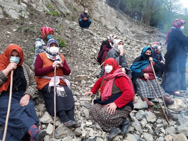 Rize İkizdere’de bulunan İşkencedere Vadisi’ne yapılmak istenen taş ocağına karşı direniş sürüyor. Üç gündür sokağa çıkma yasağını fırsat bilerek bölgeye taş ocağı açılması için çalışmalara başlamaya çalışan Cengiz İnşaat’a ait iş makinelerine engel olan köylüler, bu sabah jandarma tarafından evlerinde ablukaya alındı. Jandarmalar bu sabah kendi bahçelerinde bulunan köylülere sokağa çıkma yasağına ihlalden ceza yazmak istedi. Ancak köylüler, kendi bahçelerinde bulunduklarını belirterek tepki gösterince, jandarmalar geri dönmek zorunda kaldı.