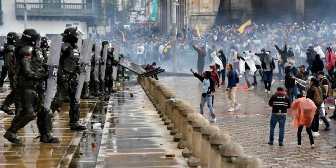 Bogota da dahil olmak bazı noktalarda polis eylemcilere cop ve biber gazı ile saldırdı.Saldırıalrda onlarca eylemci yaralandı ve gözaltına alındı.