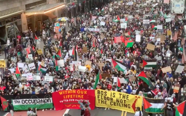 ABD’nin birçok eyaletinde de Filistin halkıyla dayanışmak için binlerce kişinin katıldığı eylemler gerçekleştirildi. New York’ta 42. Caddeyi trafiğe kapatan eylemciler “Gazze Saldırı Altında”, “Özgür Filistin” sloganları ile yürüyüş gerçekleştirdi.