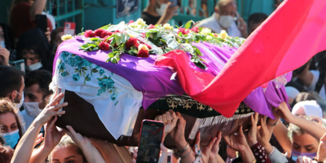 Mor flamayla sarılan tabutu omuzlayan kadınlar, Poyraz’ı defnedileceği mezara kadar sloganlar eşliğinde yürüdü. Poyraz, “Şehit namirin” sloganları ve zılgıtlar eşliğinde defnedildi.