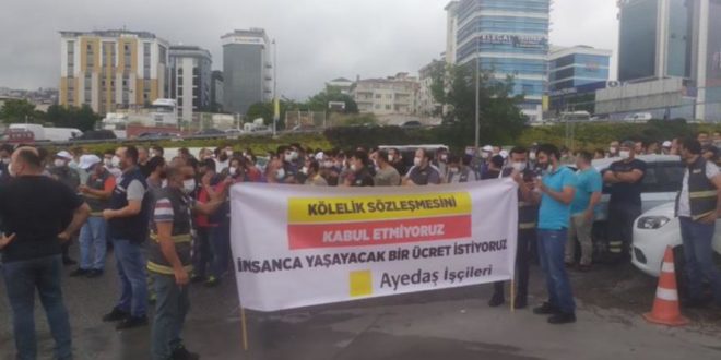 AYEDAŞ işçileri, üyesi oldukları Tes-İş sendikasının imzaladığı yüzde 9 oranında zam öngören toplu iş sözleşmesine tepki gösterdi. İşçiler İstanbul Maltepe’de bulunan Enerjisa binası önünde toplanarak sefalet zammını ve sendikayı protesto etti.