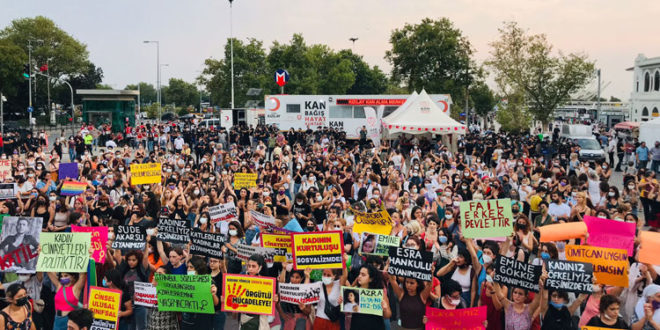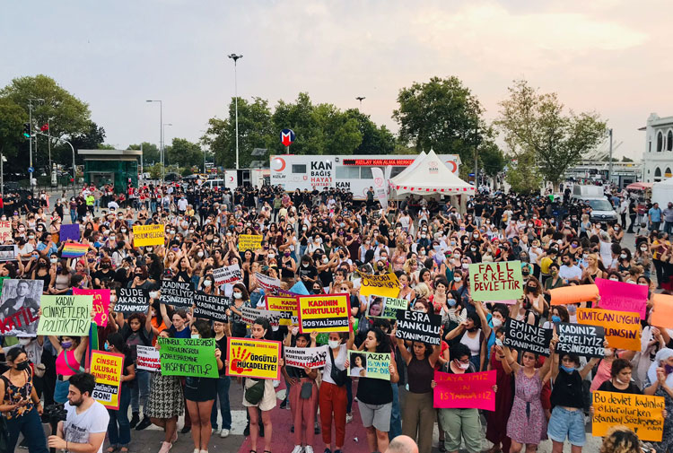 Azra Gülendam Haytaoğlu, Esra Hankulu ve Emine Gökkız’ın katledilmesini protesto eden İstanbul Sözleşmesini Uygula Kampanya Grubu, son günlerde artan kadın cinayetlerine karşı, Kadıköy Rıhtım Meydanı’nda bir araya geldi.