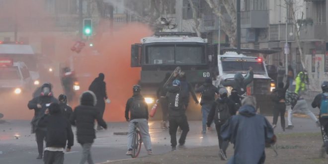 Cumartesi günü Şili’nin başkenti Santiago’da yüzlerce kişi maden projesine son verilmesi ve 2019 yılındaki eylemlerin ardından tutuklananların serbest bırakılması talebiyle sokağa çıktı. Polisin eyleme yönelik biber gazı ve tazyikli su ile saldırısının ardından çatışma çıktı. En az 11 kişi gözaltına alındı.