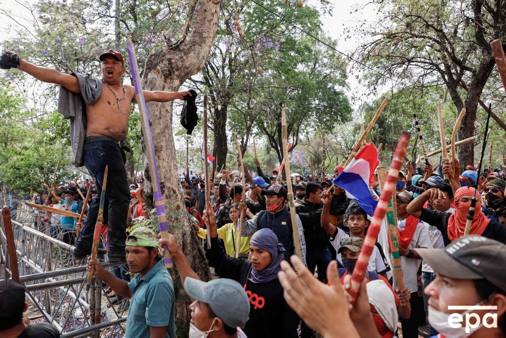 Paraguay’da hükümetin “arazi işgalcileri için hapis cezalarını arttıran” yasa tasarısına karşı Perşembe günü Kongre binası dışında yerli örgütlerinin çağrısıyla eylem gerçekleştirildi.
