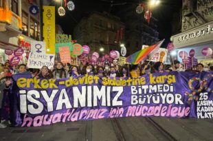 kategori: Haberler25 Kasım Kadına Yönelik Şiddete Karşı Uluslararası Mücadele Günü’nde birçok şehirde on binlerce kadın erkek ve devlet şiddetine karşı sokaklara çıktı. İstanbul ve Amed’teki eylemlere polis saldırırken, İstanbul’da polis saldırısına karşın binlerce kadın saatlerce direnişlerini sürdürdü. Kadınlar İzmir, Ankara, Kocaeli, Bursa, Çanakkale, Antep, Antalya, Eskişehir, Adana, Manisa, Muğla, Elazığ, Kayseri, Samsun gibi birçok şehir merkezinde…