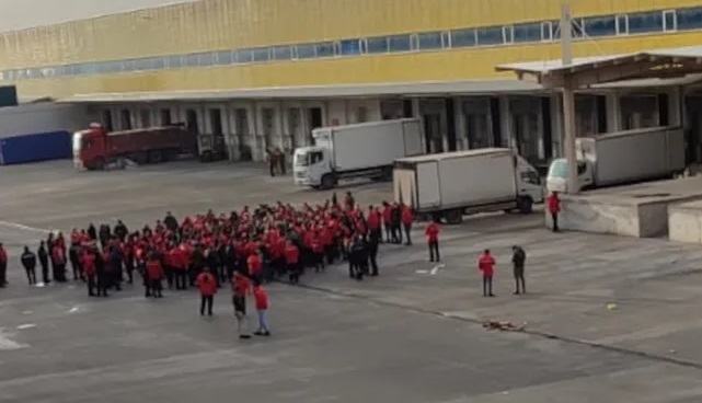 Migros’un Esenyurt’taki deposunda çalışan yaklaşık 350 işçi, fazla mesai dayatması, yemeklerin kurtlu ve bozulmuş olması, ücretlerinin düşük olması ve geç ödenmesi nedeniyle bugün fiili grev gerçekleştirdi.