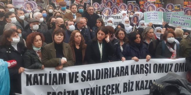 Duruşma devam ederken Kadınlar Birlikte Güçlü’nün çağrısıyla İstanbul ve Ankara’dan gelen kadınlar adliye önünde basın açıklaması düzenledi. “Deniz Poyraz ölümsüzdür” yazılı pankart taşınan açıklamada, sık sık “Şehid namırın”, “Deniz’e sözümüz barış olacak”, “Jin jiyan azadi” sloganları atıldı.