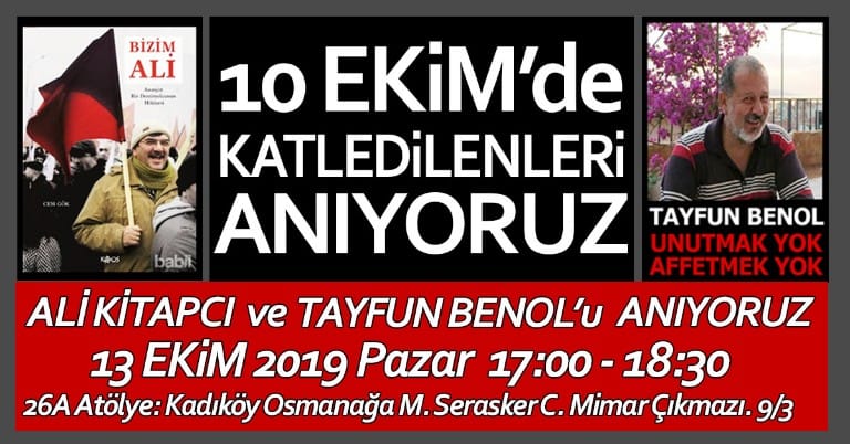 kategori: HaberlerIŞİD tarafından Ankara Tren Garı önünde gerçekleştirilen ve 103 kişinin yaşamını yitirdiği 10 Ekim Ankara Katliamı’nın 4. yılında katledilenler için İstanbul’da da çeşitli eylem ve etkinlikler gerçekleştirilecek. 10 Ekim 2019’de ilk eylem saat 14.00’te Beyazıt Meydanı’nda gençlik örgütleri tarafından düzenlenecek. Aynı gün saat 19.00’da ise “İstanbul Emek, Barış ve Demokrasi güçleri” imzasıyla Kadıköy’de Beşiktaş İskelesi önünde…