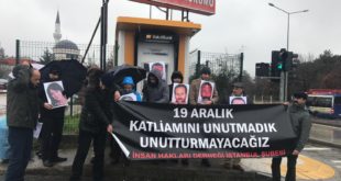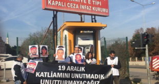 kategori: Haberlerİnsan Hakları Derneği (İHD) İstanbul Şubesi, 19 Aralık katliamının yıldönümünde İstanbul Ümraniye Hapisanesi önünde bir protesto eylemi gerçekleştirdi. Eylemde okunan bildiride devletin F tiplerini dayatmasına karşı eylem yapan tutsaklara yönelik gerçekleştirilen saldırı protesto edildi ve “19 Aralık katliamı bir insanlığa karşı suçtur. Yargılama bu suç kapsamında yapılana, zamanaşımıyla desteklenen cezasızlık son bulana kadar bu davanın…