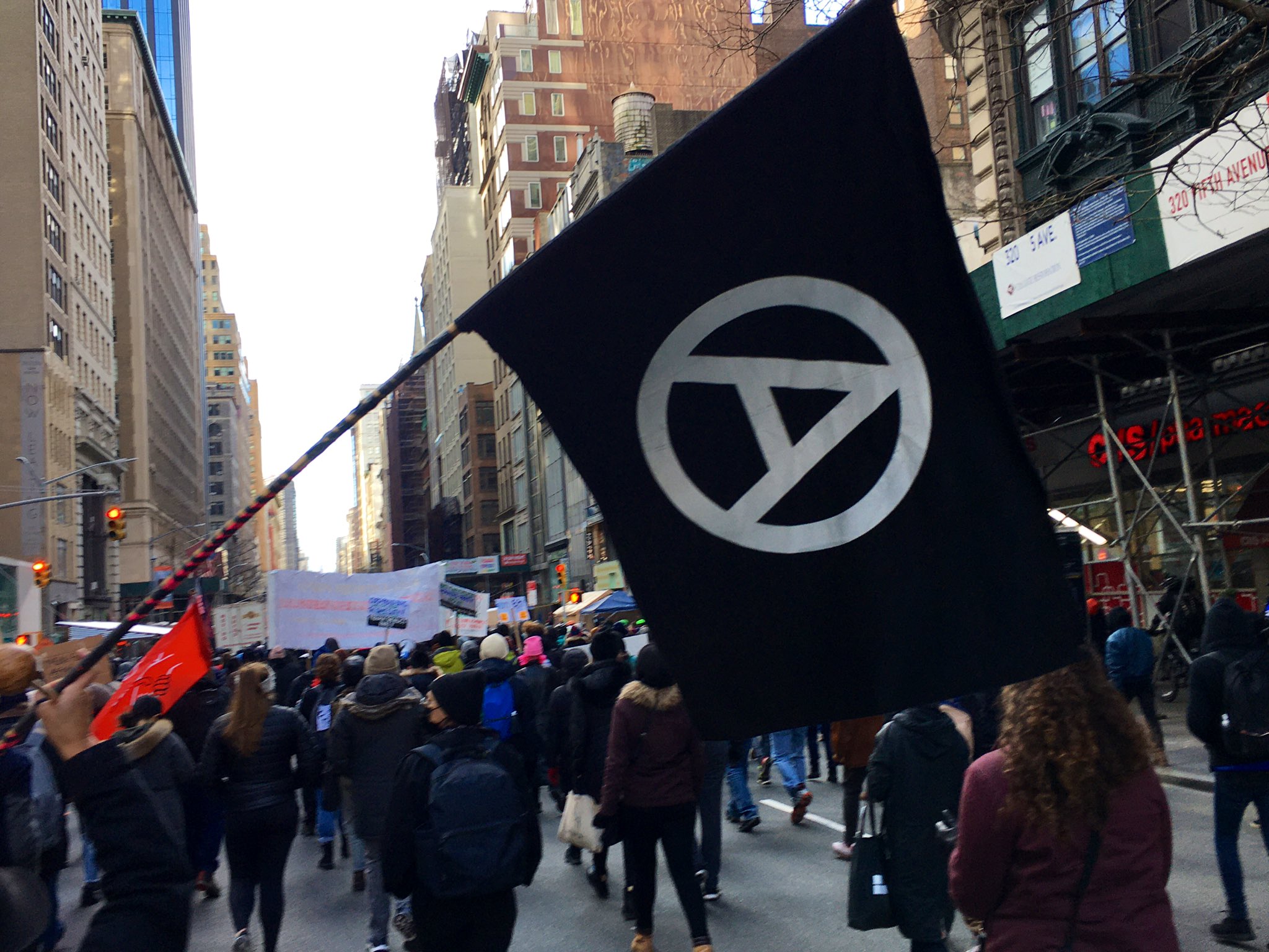 New York’ta faşistlerin eylem yapacağı haberi üzerine düzenlenen anti-faşist yürüyüşe yüzlerce kişi katıldı