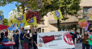 kategori: HaberlerAlmanya’nın Wuppertal kentinde Revolutionärer Jugendbund (RJ), Avrupa Birliği’nin ve özellikle Alman devletinin mülteci politikalarıyla işledikleri suçları ifşa etmek ve Yunanistan adalarında sıkışmış olan mültecilerle dayanışmak için eylem gerçekleştirdi. Merkez tren garının karşısında başlayan eylemde yapılan konuşmalarda Moria’daki mültecilerin durumu hakkında bilgiler verildi ve dayanışmanın önemi açıklandı. Eylemin aynı zamanda polis şiddetine ve ırkçılığa karşı olduğu…