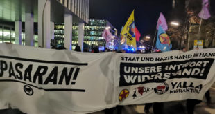 kategori: HaberlerAlmanya’nın Köln kentinde otonomcular tarafından işgal edilerek sosyal merkez olarak kullanılan Autonomes Zentrum (Otonom Merkez) binasının polis tarafından boşaltılamak istenmesine karşı, dün akşam otonomcular ve diğer antifaşistler tarafından eylem düzenlendi. 500’ün üzerinden eylemcinin katıldığı gösteride yeni polis yasasına da tepki gösterildi. Yürüyüş öncesinde Zülpicher Platz tramvay istasyonunu bir süre bloke eden eylemciler daha sonra yürüyüşe geçtiler.…