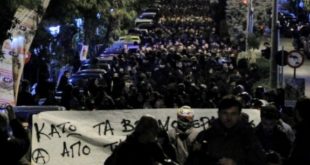 kategori: HaberlerDün (13 Mart) sabah saat saatlerinde Atina’da biri mülteciler tarafından kullanılan 2 işgal evi (squad) polisler tarafından tahliye edildi. Polis saldırısı sırasında yaklaşık iki yüz kişi gözaltına alındı. Kayıtlı olmayan mültecilerin toplama merkezlerine gönderildiği, gözaltına alınanların avukatlarıyla dahi görüştürülmediği belirtiliyor. Evlerin tahliyeleri ve polis saldırısı sonrasında binlerce insan sokağa döküldü. Polisin eyleme biber gazıyla saldırmasının…