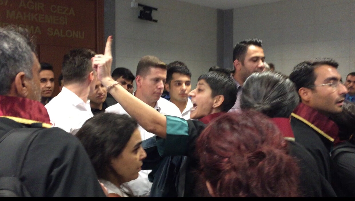 kategori: HaberlerYargılandıkları davada haklarında Cuma günü tahliye kararı verilen Çağdaş Hukukçular Derneği (ÇHD) Genel Başkanı avukat Selçuk Kozağaçlı İstanbul 26. Ağır Ceza Mahkemesi tarafından tutuklandı. Duruşma öncesinde salonun içinde çok sayıda sivil ve resmi polis bulunması dikkat çekti. Kozağaçlı’nın avukatlarının müvekkilleri ile görüşme taleplerinin mahkeme başkanı tarafından reddedilmesi üzerine başlayan gerginlik nedeniyle avukatlar savunma kürsüsüne gelemedi.…