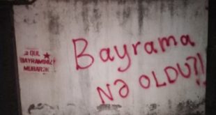 kategori: HaberlerAzerbaycan devleti tarafından “Gül Bayramı” olarak kutlanan 10 Mayıs’ta Bayram Mammedov’un yoldaşları tarafından Bakü’nün birçok noktasına yazılamalar yapıldı. Mammedov 2016 yılında, Azerbaycan eski Cumhurbaşkanı Haydar Aliyev’in doğum günü olan 10 Mayıs’ta, Giyas İbrahimov ile birlikte Bakü’de Haydar Aliyev’e ait bir anıtın üzerine “Qul bayramınız mübarek (Mutlu Köleler Günü)” yazdığı için tutuklanmıştı. Bugün yoldaşları, İstanbul’da şüpheli…