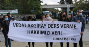 kategori: HaberlerBimeks işçileri dört yıldır verilmeyen hakları için Boğaziçi Üniversitesi önünde eylem gerçekleştirdi. Eylem nedeniyle üniversitenin girişini polis tarafından ablukaya alındı. BİMEKS patronu olan Vedat Akgiray’ın akademisyen olarak çalıştığı Boğaziçi Üniversitesi önünde “Vedat Giray ders verme, hakkımızı ver!” pankartı açan işçiler, burada basın açıklaması yaptı. “Bizler 1500 Bimeks işçisi olarak Türkiye’nin eloktronik devi olan Bimeks bünyesinde yıllarca çalıştık.…