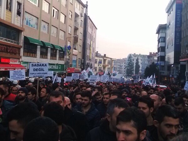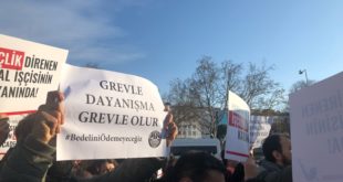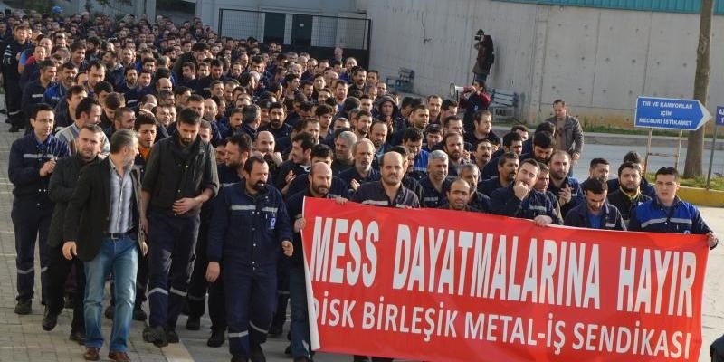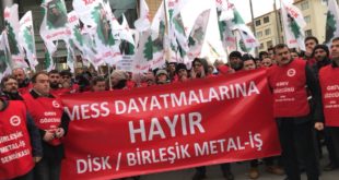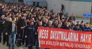 kategori: HaberlerMESS Grup TİS sürecinde Birleşik Metal İş üyesi işçiler 5 Şubat’ta greve başlamaya hazırlanırken, sendika yönetimi tarafından MESS ile anlaşma sağlandığı duyuruldu. Hükumetin çağrısı ile gerçekleştirilen bugünkü toplantı sonrasında alınan bu kararla MESS’in dayattığı şartlar kabul edilmiş oldu. 29 Ocak’ta gerçekleşen Birleşik Metal-İş temsilciler kurulu toplantısında, yüzde 17’lik zammın kabul edilemez olduğu vurgulanarak 5 Şubat’ta…