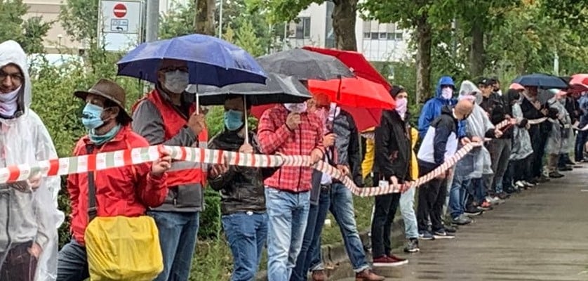 kategori: HaberlerAlmanya’da 3 bin işçi Stuttgart’ta bulunan Bosch’un üretim ve yönetim merkezini zincir oluşturarak bloke etti. İşletmenin çevresini oluşturdukları insan zinciriyle kuşatan işçiler işten atma saldırılarına karşı seslerini yükselttiler. Yerel ve bölgesel medyanın görüntü alıp röportajlar yaptığı eylem Saat 11’den 12’ye kadar sürdü. Bosch’un Schwieberdingen işletmesinden işçiler de dayanışmanın bir işareti olarak insan zincirinde yer aldılar.…