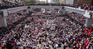 kategori: HaberlerMyanmar’da 1 Şubat’ta gerçekleştirilen askeri darbeye karşı başlayan eylemler sürüyor. Bugün Myanmar’in en büyük kenti olan Yangon’da gerçekleşen eylemlere on binlerce kişi katıldı. Bugün için yapılan tüm şehirde yolları bloke etme çağrısı sonrasında sabah saatlerinden itibabren şehrin farklı noktalarıda toplanan eylemciler yolları trafiğe kapattı. Yolları kapatmak için şoförlere “bozuk araba eylemi” çağrısı da yapıldı. Yangon’da…