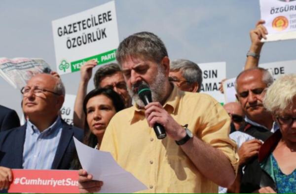 kategori: HaberlerCumhuriyet gazetesi çalışanları dün hâkim karşısına çıktı. Cumhuriyet’in yayın politikasının suçlama konusu edildiği dava kapsamında Cumhuriyet’in 11’i tutuklu 17 yazar, çizer, muhabir, avukat ve yöneticisi, sansürün kaldırılışı nedeniyle Basın Bayramı olarak kabul edilen dün ilk kez mahkeme karşısına çıktı. Cumhuriyetçilerin yargılandığı ilk duruşmaya Akın Atalay, Kadri Gürsel ve Musa Kart’ın savunmaları alındı.Alkışlarla karşılandılar Tutuklu 11…
