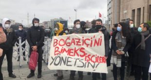 kategori: HaberlerÖdenmeyen alacakları için haftalardır direnen Bimeks işçileri, haklarında açılan dava için bugün (13 Ocak) Çağlayan’da bulunan İstanbul Adliyesi önünde eylem gerçekleştirdi Bimeks işçileri hakkında Toplantı ve Gösteri Yürüyüşleri Kanunu’na muhalefet suçlamasyıla açılan davanın ilk duruşmasında hakimin mazeret bildirmesi nedeniyle dava ertelendi. Duruşma çıkışı Bimeks işçileri adliyenin karşısında bulunan Çağlayan Meydanı’nda eylem gerçekleştirdi. Yaptıkları basın açıklamasında…