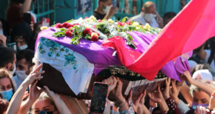 kategori: Haberlerİzmir’de Halkların Demokratik Partisi’ne (HDP) yönelik saldırıda Onur Gencer tarafından öldürülen Deniz Poyraz’ın binlerce kişi tarafından son yolculuğuna uğurlandı. Deniz Poyraz’ın cenazesi Konak ilçede bulunan Tepecik Mahallesi’ndeki Mezarlıklar Müdürlüğü’nden alınırken kadınlar tarafından taşınan tabutu, zılgıtlar ve alkışlar eşliğinde aile evinin bulunduğu Bağkuyu Mahallesi’ne götürüldü. Poyraz’ın cenazesini mahalle girişinde karşılayanların da katılımıyla binlerce kişi “Şehit namirin”, “Denizler…
