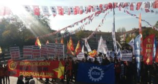 kategori: HaberlerManisa’da bulunan Vestel fabrikasında koronavirüs vakalarının ve virüs nedeniyle hayatını kaybeden işçilerin sayısının artması nedeniyle DİSK tarafından, İstanbul’da bulunan Zorlu Holding önünde eylem gerçekleştirildi. Eylemde sık sık ”Çalışırken ölmek istemiyoruz” “Vestel işçisi köle değildir”, “Patronların kölesi olmayacağız” ”Vestel işçisi yalnız değildir.” sloganları atıldı. “Vestel virüs üretiyor, işçilerin hayati değerlidir” pankartı açılan eylemde konuşan DİSK Genel…