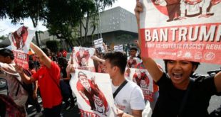 kategori: HaberlerAsya turunun son ayağında ASEAN liderleriyle görüşmek üzere bugün Filipinler’in başkenti Manila’ya giden ABD Başkanı Donald Trump yüzlerce kişi tarafından protesto edildi. Sputnik’te yer alan habere göre, yüzlerce kişiden oluşan grubun ABD konsolsoluğuna doğru yürüdüğü protestolarda ”Trump’ı boykot edin”, ”ABD’nin emperyalist savaş ve yağmalarına karşı koyun” yazılı pankartlar açıldı. ‘Trump, ABD’nin CEO’sudur’ Göstericilerden biri olan…