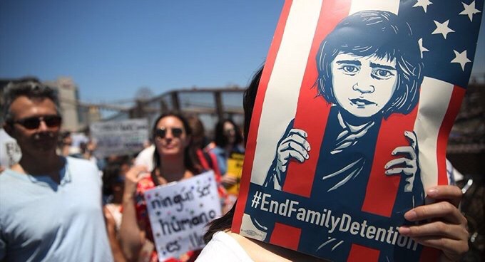 kategori: HaberlerABD Başkanı Donald Trump’ın göçmen aileleri çocuklarından ayıran “Sıfır Tolerans” politikasına karşı çıkan 10 binlerce kişi ABD’nin çeşitli yerlerindeki 650’den fazla noktada sokağa çıktı. ABD İç Güvenlik Bakanlığı’nın, göçmenlerin tutulduğu tesislerden birini basın mensuplarına açmasından sonra ortaya çıkan çocuklu ailelerin kafeslerdeki görüntülerle başlayan tepkiler, Trump yönetiminin yaklaşık 2 bin çocuğu ailesinden ayırması ile iyice büyüdü.…