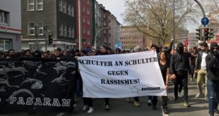 kategori: HaberlerAlmanya’nın Dortmund kentinde binlerce kişi, neo-nazilerin yürüyüşüne karşı eylemler gerçekleştirdi. “Avrupa Uyan!” sloganıyla gerçekleşen yürüyüş için faşistlerin uzun süredir çalışma yaptığı pek çok Avrupa kentinden katılım olduğu belirtiliyor. Faşistlerin, polis korumasında gerçekleşen ve yaklaşık 600 kişinin katıldığı yürüyüşüne karşı anti faşistler iki ayrı eylem düzenledi. Saat 12.30’da çeşitli siyasi partiler ve sendikalar neo-Nazilerin yürüyüş rotasından…
