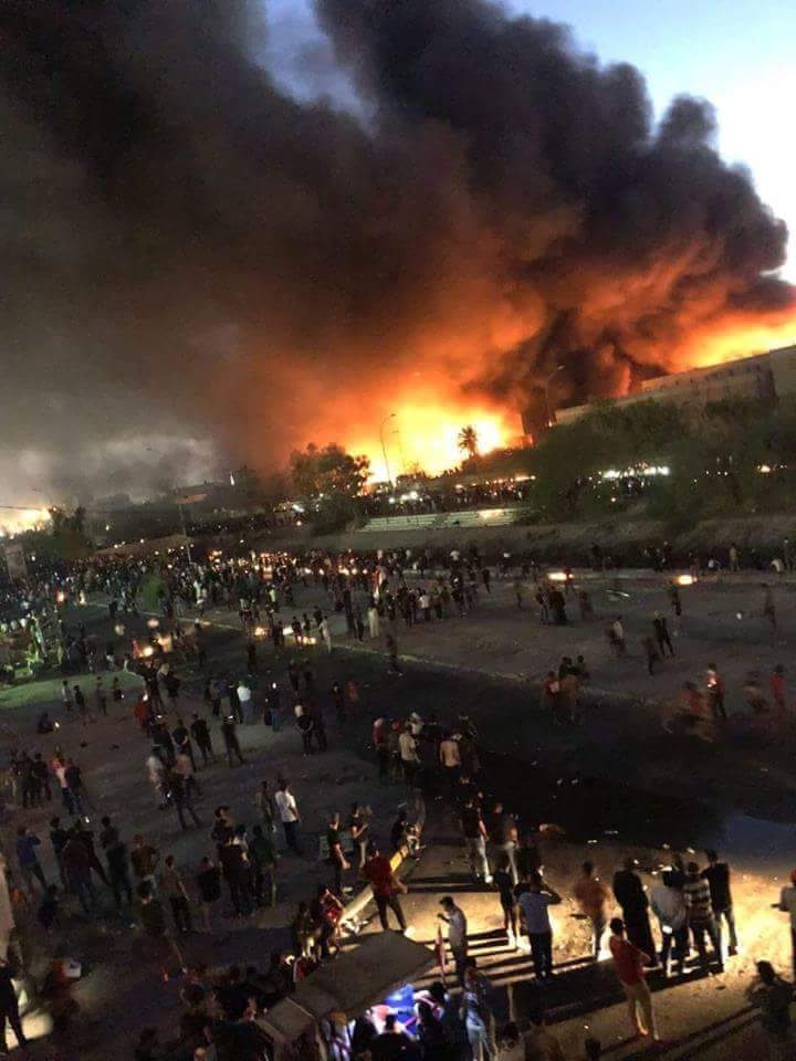 Basra’da bir grup gösterici İran Başkonsolosluğunu basarak ateşe verdi