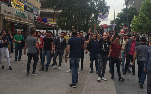 kategori: HaberlerAnkara Sakarya Caddesi’nde HDP’nin açtığı seçim standına faşist bir güruh saldırı girişiminde bulundu. ‘Bozkurt’ işareti yapan faşistler karşısında HDP’liler standı savundu. Standı bekleyenlerin kararlı duruşu sonrasında faşist güruh Sakarya Caddesi’nden uzaklaştı. Yeryüzü Postası