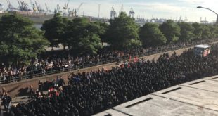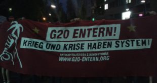 kategori: HaberlerYarın başlayacak olan G20 zirvesinden bir gün önce Hamburg’da eylemler başladı. Almanya’nın yanı sıra İsviçre, İtalya, İngiltere, Danimarka ve Fransa gibi Avrupa’nın pek çok ülkesinden gelen binlerce kişi sokaklardaydı. Eylem öncesi polis Hamburg sokakları ile tren istasyonları ve Hamburg Havaalanında yığınak yaparken İtalya’dan gelen bir grup Hamburg Havaalanında durduruldu ve Almanya’ya girişlerine izin verilmedi. Gün…