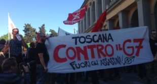 kategori: Haberler10 Nisan Pazartesi Toskana’nın Lucca kentinde başlayan iki günlük G7 zirvesi anarşistler, NoTav hareketi ve savaş karşıtı eylemciler tarafından protesto edildi. Fransa, Almanya, İtalya, Japonya, İngiltere, Kanada ve ABD’den bakanların katıldığı zirvede ABD’nin Suriye saldırısının ardından atılacak adımlar ile Rusya ve Suriye’ye yönelik yaptırımlar ana gündem maddesi. Savaş ve askeri harcamalara karşı slogan atarak yürüyen…