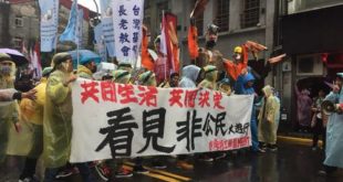 kategori: HaberlerTayvan’ın başkenti Tapei’de yağmura rağmen binin üzerinde göçmen emekçi kölelik koşullarını protesto etmek ve temel çalışma haklarının tanınması için yürüyüş gerçekleştirdi. Çoğunluğunu Filipinli göçmenlerin oluşturduğu emekçiler Çalışma Bakanlığı önünde taoplanarak Cumhurbaşkanlığı ofisine kadar yürüdüler. Tapei merkezli “göçmenlerle dayanışma ve güçlendirme ağı” MENT’in organize ettiği eylem “göçmenlerin yurttaş olarak tanınması” temasıyla yapıldı. Tayvan vatandaşlarıyla eşit hakla…