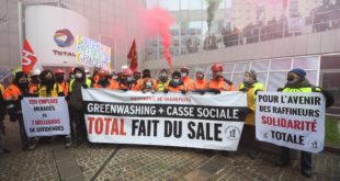 kategori: HaberlerFransa’nın Seine-et-Marne departmanına Melun’da bulunan, petrol tekeli Total’e bağlı Grandpuits rafinerisinin kapatılma planına karşı 5 Ocak’tan bu yana grevde. Dün (9 Şubat) işçiler Total’in Paris’te bir çok şirket merkezinin bulunduğu La Defense bölgesinde merkez ofisinde eylem gerçekleştirdi. Eylemde “Yeşil göz boyama (greenwashing) ve sosyal kargaşa: Total pislik yapıyor” yazılı pankart açıldı. İklim aktivistlerinin destek verdiği…