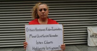 kategori: HaberlerBakırköy Ethica hastanesi’nden “itaatsizlik ettiği” bahanesiyle 21 Mayıs’ta işten çıkarılan 49 yaşındaki Derya Koçak işine geri dönmek için oturma eylemine başladı. Hastanede üç buçuk yıldır yardımcı sağlık personeli olarak çalışan Derya Koçak oturma eylemini 8 gündür hastane önünde sürdürüyor. Mezopotamya Ajansı’na konuşan Koçak, işini dürüstlükle yapmasına, verilen her görevleri yerine getirmesi ve herhangi bir disiplinsizlik yapmamasına…
