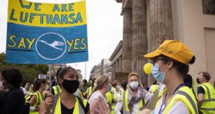 Lufthansa çalışanları, hükümetin kurtarma paketini görüşeceği toplantı öncesi pek çok şehirde eylem yaptı