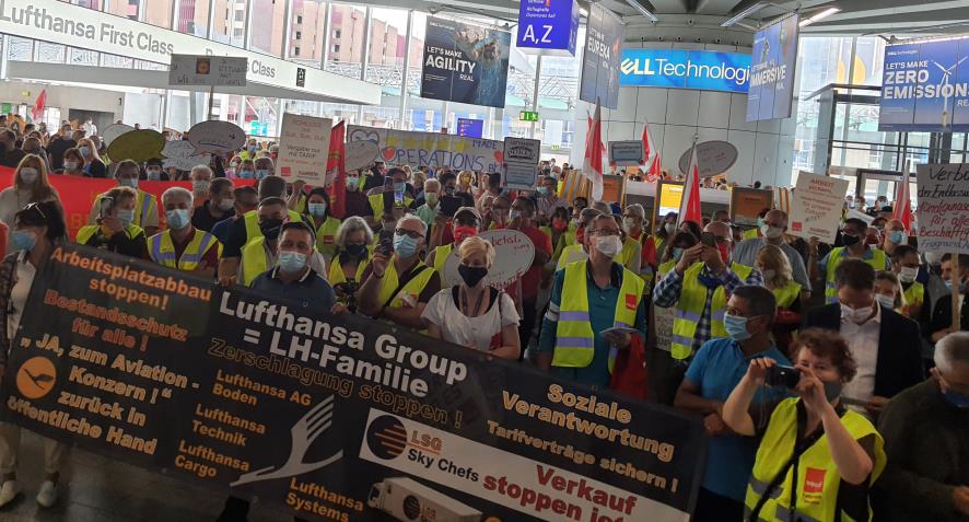 kategori: HaberlerAlmanya’nın Frankfurt kentinde bulunan Frankfurt havaalanında yüzlerce çalışan işten çıkarmalara karşı eylem gerçekleştirid. Havaalanında toplu sözleşme ve grev yapma hakkına sahip tek sendika olan Ver.di, 19 Haziran Cuma günü için tüm havaalanı çalışanlarına eylem çağrısı yapmıştı. Kızıl Bayrak’ın haberine göre çağrıya uyan, çeşitli bölümlerde çalışan yüzlerce işçi bugün saat 12.00’de terminalin içinde bir araya geldi.…