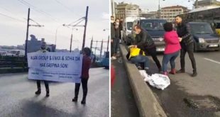 kategori: Haberlerİşçi Temsilcileri Konseyi (İTK) ve Emeğin Gücü Derneği üyeleri Asfa Group ve Enka/Soha şirketleri firmaları tarafından Sırbistan‘da çalıştırılan ve ücretleri ödenmeden sınır dışı edilmek istenen işçilerle dayanışmak için Galata Köprüsü‘nü trafiğe kapattı. Galata Köprüsü’nde “Asfa Group& Enka & Soha’da Hak Gaspına Son” yazılı pankart açan eylemciler “İşçiler sizin köleniz değil”, “Ücret haktır gasp edilemez”, “İnşaat işçisi köle değildir”…