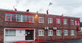 kategori: HaberlerBirleşik Krallık’ta bulunan Filistin dayanışma grubu Palestine Action (Filistin Eylemi), İsrail’li silah şirketi Elbit’in yan kuruluşu olan UAV Engines’in İngiltere’nin Shenstone kentindeki fabrikasında 23 Şubat Salı günü eylem gerçekleştirdi. Şirket binasına çıkarak Filistin bayrağı açan eylemciler, UAV Engines’in Filistinlilere karşı kullanılan insansız hava aracı tedariğini protesto etmek için kırmızı boyalar döktü ve binanın camlarını kırdı…