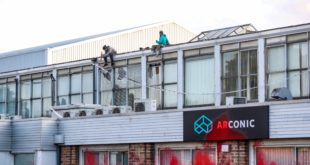 kategori: Haberlerİngiltere’nin Birmingham kentinde İsrail ordusu için savaş uçağı yapımında kullanılan malzemeleri ve Grenfell Tower yangınına yol açan yanıcı malzemeleri üreten Arconic fabrikası Dün (14 Haziran) sabah erken saatlerde Filistin Eylem (Palestine Action) aktivistleri tarafından işgal edildi. Arconic fabrikasının çatısına çıkan eylemciler diğerleri fabrika pencerelerine kırmızı boya püskürttü ve fabrika faaliyetlerinin bir süreliğine durmasına neden oldu.…