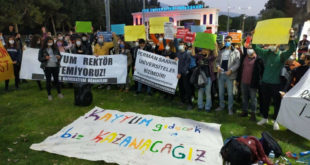 kategori: HaberlerÜniversitelere rektör atamalarına karşı 4 Ocak’ta Boğaziçi Üniversitesi’nde başlayan ve diğer üniversitelere yayılan direniş birinci haftasını doldurdu. İstanbul Üniversitesi öğrencileri Beyaztı Meydanı’nda eylem gerçekleştirdi. “Kayyum değil, seçim istiyoruz” pankartı açan öğrenciler “Mahmut Ak İÜ’ye rektör olamaz”, “Kayyum rektör istemiyoruz” sloganları attı. Antalya’da Antalya Gençlik Dayanışması rektör atamalarına karşı eylemlere destek vermek için Attalos Meydanı’nda eylem gerçekleştirdi.…