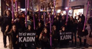 kategori: Haberler* Fotoğraf: Elif Akgül – bianet 25 Kasım Kadına Yönelik Şiddetle Uluslararası Mücadele Günü’nde kadınlar ve LGBTİ’ler İstanbul’da Beyoğlu Tünel Meydan’da buluştu. Saat 18.00’da toplanan kadınlar ve LGBTİ’ler “Kadınlar birlikte güçlü”, “Susmuyoruz, korkmuyoruz, itaat etmiyoruz”, “Gelsin baba, gelsin koca, gelsin devlet, gelsin cop”, “Dünya yerinden oynar, kadınlar/ibneler özgür olsa” sloganlarıyla Odakule’ye kadar yürüdü. Odakule’ye varan…