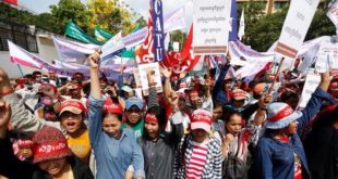 kategori: HaberlerKamboçya’nın başkenti Phnom Penh’in Dangkor bölgesinde ayakkabı işçileri ödenmeyen ücretler, verilmeyen tazminatlar için eylem yaptı Patronun “Kun Da” ayakkabı fabrikasını kapatıp kaçmasının ardından Salı günü eylem yapan 400 işçiçiden Chhin Vanna geçen ay (Nisan) fabrikanın kapandığını ve patronun gelip işçilerin ücretini ödemediğini söyledi. Vanna “patronumuz kaçtı, kimse ödenmeyen ücretlere ve tazminatlarımıza bir çözüm bulmadı” dedi. “Khmertimeskh.com” haber…