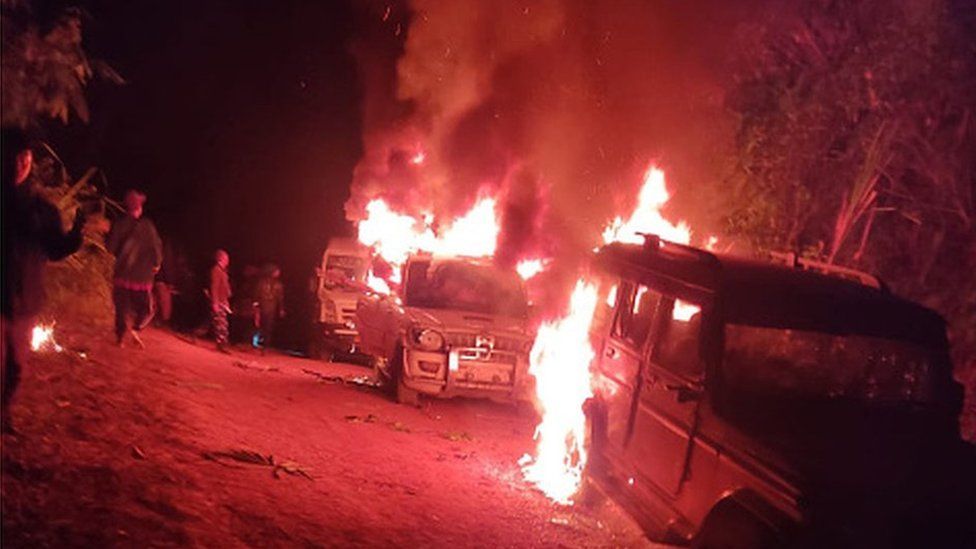 kategori: HaberlerHindistan’ın Nagaland eyaletinde ordu birliklerinin 4 Kasım’da bir otobüse, içerisinde gerillaların olduğu istihbarat aldıkları gerekçesiyle ateş açması sonrasında 13’ü maden işçisi olmak üzere en az 14 sivilin katledilmesi nedeniyle birçok noktada eylemler gerçekleştiriliyor. Dün devam eden eylemlerde Nagaland’ın Mon kasabasında yerliler ordu kampını hedef aldı. Eylemciler orduya ait bazı araçları ateşe verirken, askerlerin eylemcilere ateş…