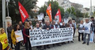 kategori: HaberlerKamu Emekçileri Sendikaları Konfederasyonu (KESK) kamu emekçilerinin kriz karşısında eriyen maaşlarının artırılması talebiyle pek ilde eylem gerçekleştirdi. İstanbul KESK İstanbul Şubeler Platformu saat 16.00’da Cağaloğlu’ndaki İstanbul Defterdarlığı önünde basın açıklaması yaptı. Eylemde enflasyonun gerçekte yüzde 45’lere vardığına, bütçede emekçinin söz hakkının olmadığına dikkat çekilerek kamu emekçilerinin maaşlarıyla 2008’de 23 çeyrek altın, şimdiyse 9 çeyrek altın…