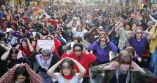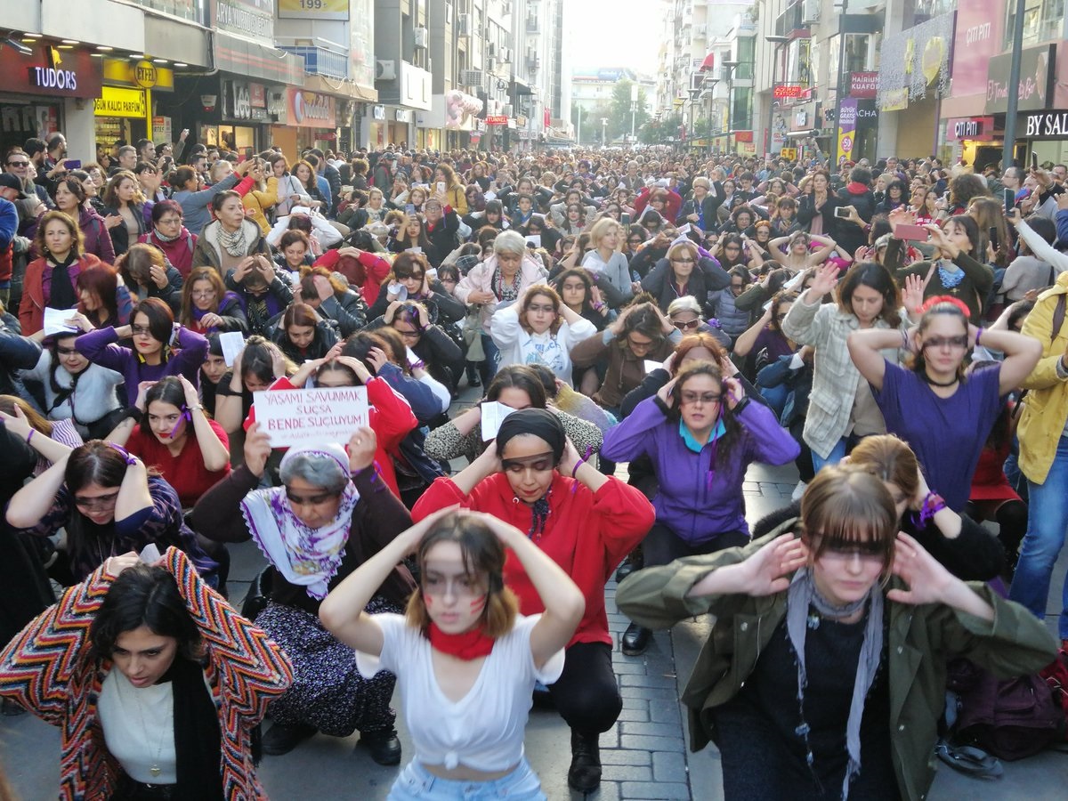 kategori: HaberlerŞilii’deki Feminist örgüt Las Tesis’in başlattığı ve daha sonra dünyaya yayılan danslı protesto eylemlerine yönelik geçtiğimiz hafta gerçekleşen polis saldırılarına ve hükümetin tehditlerine rağmen kadınlar bugün İzmir ve İstanbul’da bir araya geldi. İzmir Alsancak’ta bir araya gelen yaklaşık bine yakın kadın, Las Tesis dansıyla kadına yönelik şiddete protesto etti. Kadınlar polisin saldırı tehditlerine rağmen protesto…