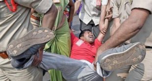 kategori: HaberlerHindistan’ın güneydoğusunda bulunan liman kenti Visakhapatnam’da işçiler, özelleştirmeleri ve hükümetin emek karşıtı politikalarını protesto etmek için kitlesel bir gösteri düzenledi. Liman ve rıhtım işçilerini temsil eden 6 federasyonun çağrısıyla, Hindistan merkezi hükümetinin ve yerel yönetimlerin, iş güvenliği gibi ekonomik-sosyal haklara yönelik saldırılarına karşı yapılan gösteriye polis saldırdı. Aralarında sendika yöneticilerinin de olduğu çok sayıda protestocu…
